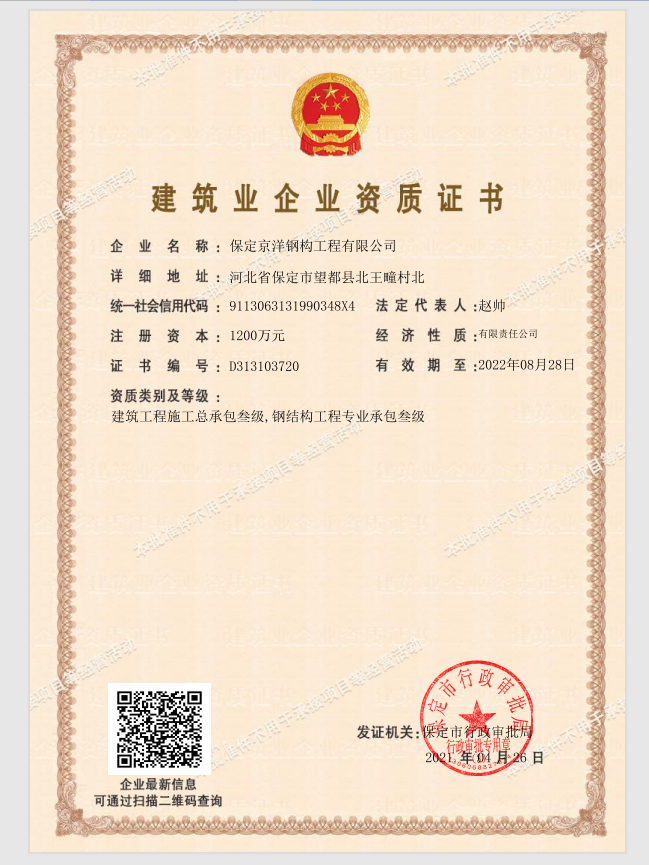 公司主要致力于鋼結(jié)構(gòu)設(shè)計、制作、安裝、銷售為一體的鋼結(jié)構(gòu)施工專業(yè)企業(yè)。成立于2010年,注冊資金1200萬元。公司擁有國內(nèi)先進的數(shù)控自動焊接設(shè)備、H鋼結(jié)構(gòu)生產(chǎn)線、CZ鋼快速切換一體機、自動剪切壓板機等,優(yōu)良的制作加工車間及檢測設(shè)備。公司秉承“質(zhì)量求生存,管理出效益”發(fā)展理念,組建了一支高素質(zhì)、高水平的團隊以及責(zé)任明確、職責(zé)清楚、獎罰分明的管理體系。